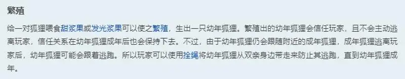 5、这对狐狸繁殖并生下一个小狐狸(不是白狐就多试几次)。小狐狸会十分信任玩家,并保持对玩家的忠诚。