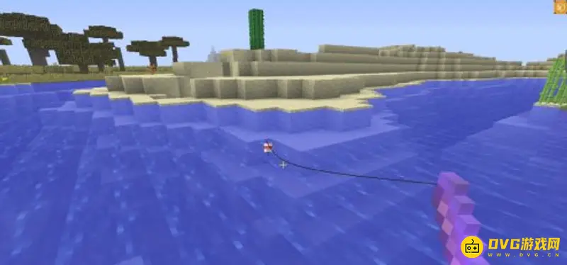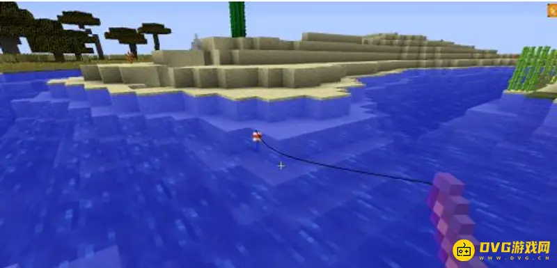 5.拿着附魔“海之眷顾”的“钓鱼竿”来到水源边钓鱼,钓到宝物的几率增加。