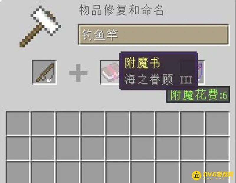 4.使用“钓鱼竿”附魔“海之眷顾”。