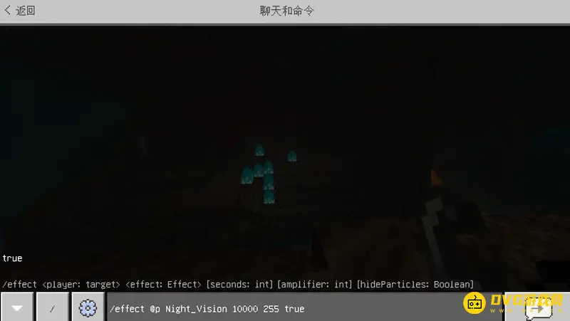 获得夜视效果的指令是/effect @p Night_Vision 10000 255 true。