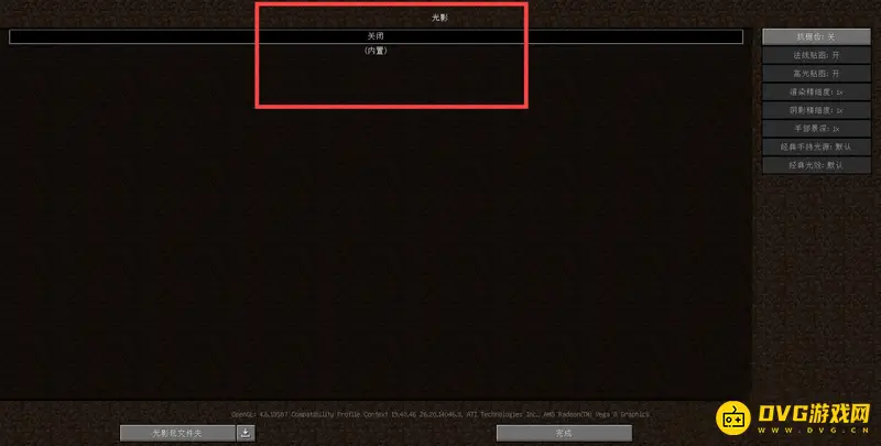 2、点击“光影包文件夹”,这时就会弹出一个文件夹,把光影文件拖进去,然后点击你要加载的光影包既可。