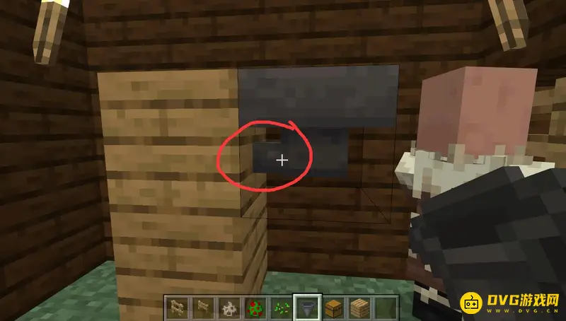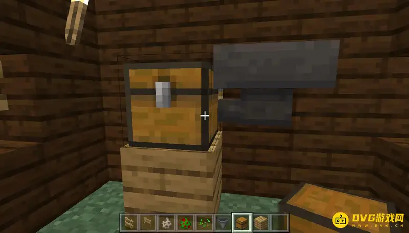 2,接下来把左侧的木板破坏掉,放上一个箱子,就可以成功把漏斗连接上箱子了。