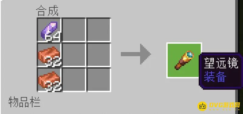 我的世界紫水晶只可以合成望远镜,望远镜样式如图: