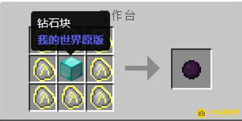 4、将八个永恒燃料和一个钻石块放到工作台中,永恒燃料在四周,钻石块在最正中间,这样就可以合 成暗物质了。