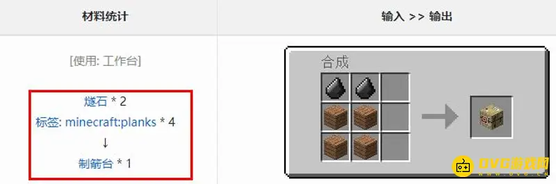 1、制箭台的做法很简单,只要用两颗燧石和四颗木材就能在工作台上合成得到。