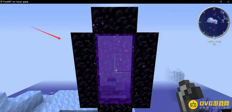 2、我们使用黑曜石搭建成如下图所示的门的形状,并使用打火石激活地狱门,进入地狱门以后即可前往下界。