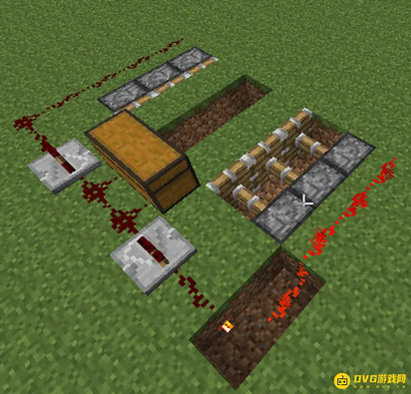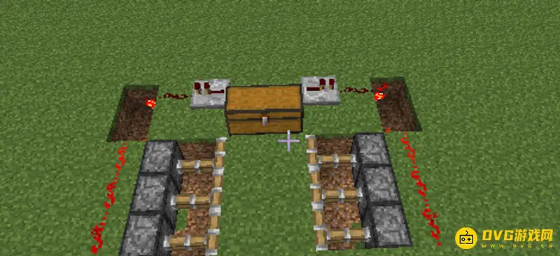 2、阱箱的周围放上红石和红石中继器。(注意红石中继器的方向是朝外的)
