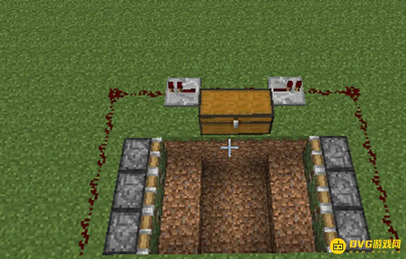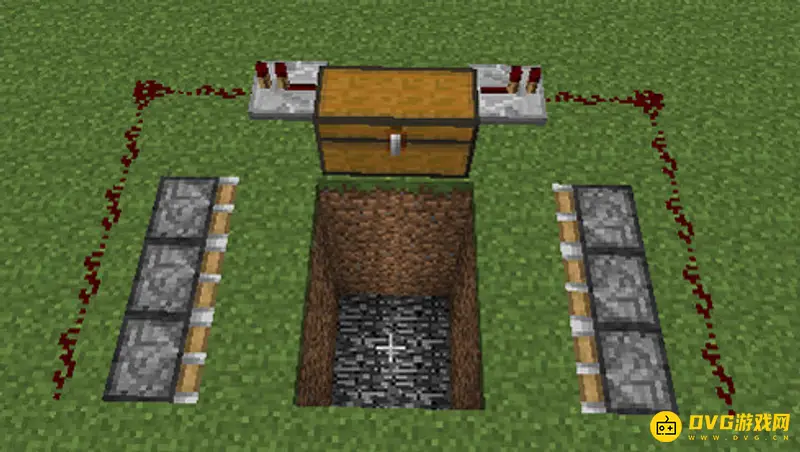7、装一下,陷阱箱就做好了。只要一打开陷阱箱,就会掉下去。(也可以在坑的底部放上岩浆或挖空)