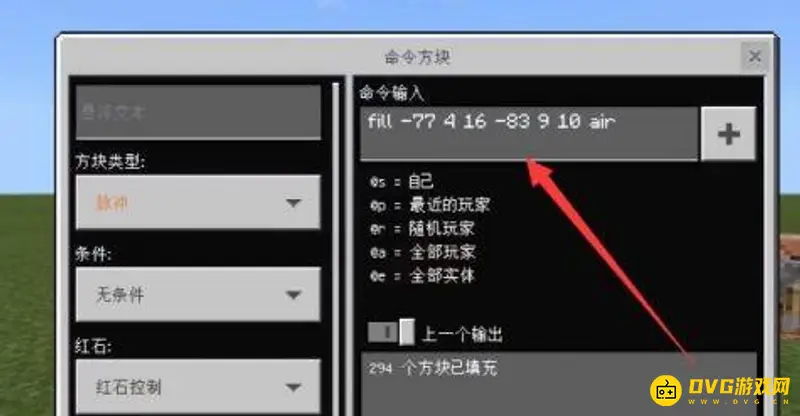 1.首先进入我的世界游戏中,打开命令面板,输入fill命令,参数如下图所示