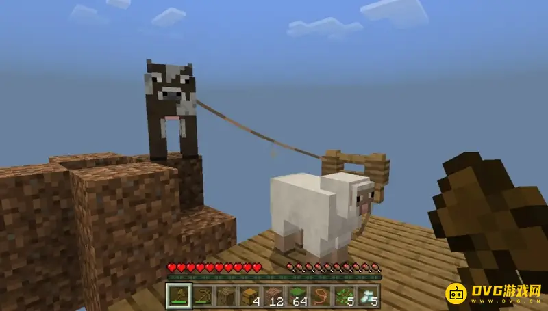 (2)此时就刷了,一头牛,我们先用栓绳将它和羊羊拴在一起,待会再安置它们。
