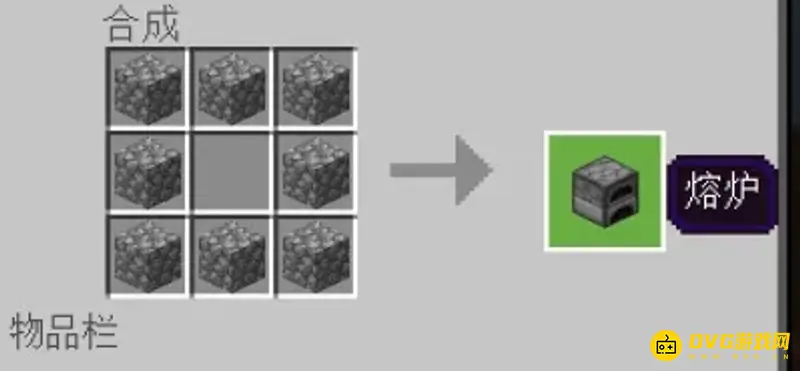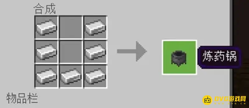 (2)再用木板烧制铁矿石,烧制出铁锭后合成出炼药锅。