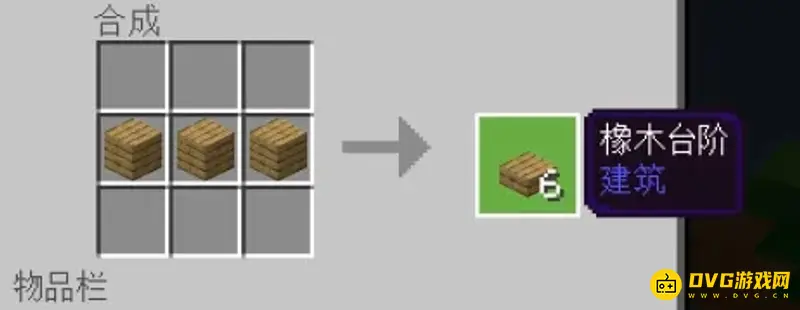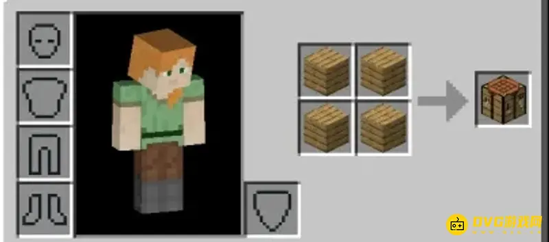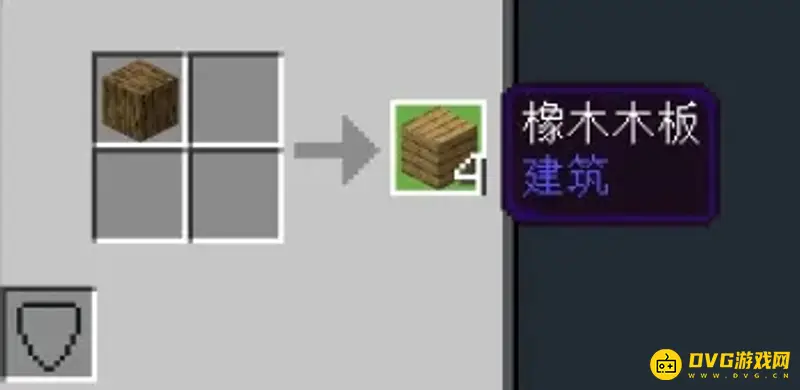 (3)由于我们会获得的第一个方块,必定会是橡木,我们可以用它分成四块木板合成工作台。