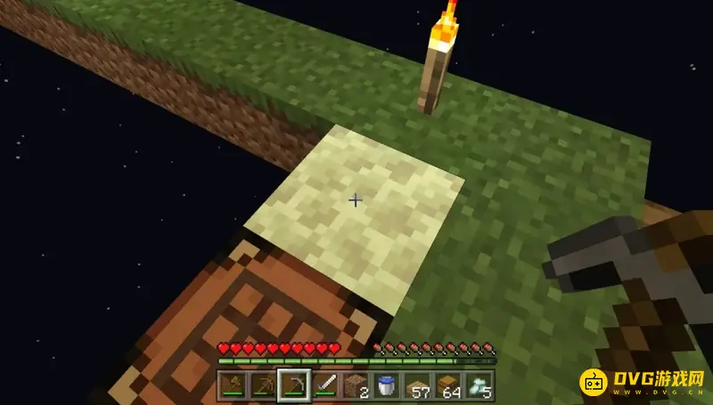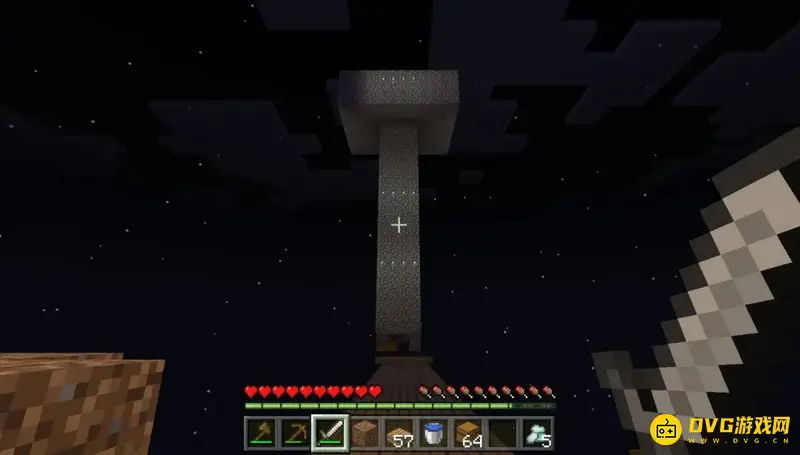 (6)这里有个小秘诀,冒险家们可以站在初始方块上方,破坏初始方块这样可以保证自己,一定能拿到破坏掉的方块,并且大家也不用担心自己掉下去因为重置初始方块的时候人也会被重置回来。