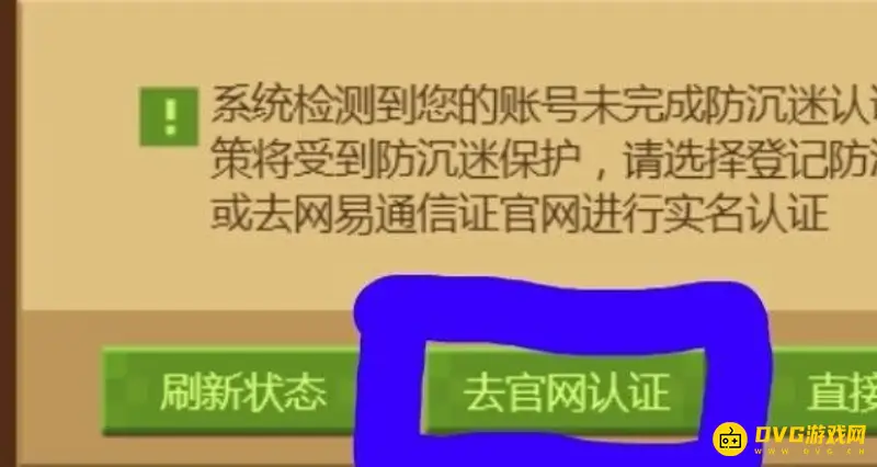 2.进入我的世界,开始游戏,会有一个实名认证的窗口弹出来,点击直接登记,只要你输入姓名身份证号等个人信息,如果你满18岁了,就可以解除防沉迷了。