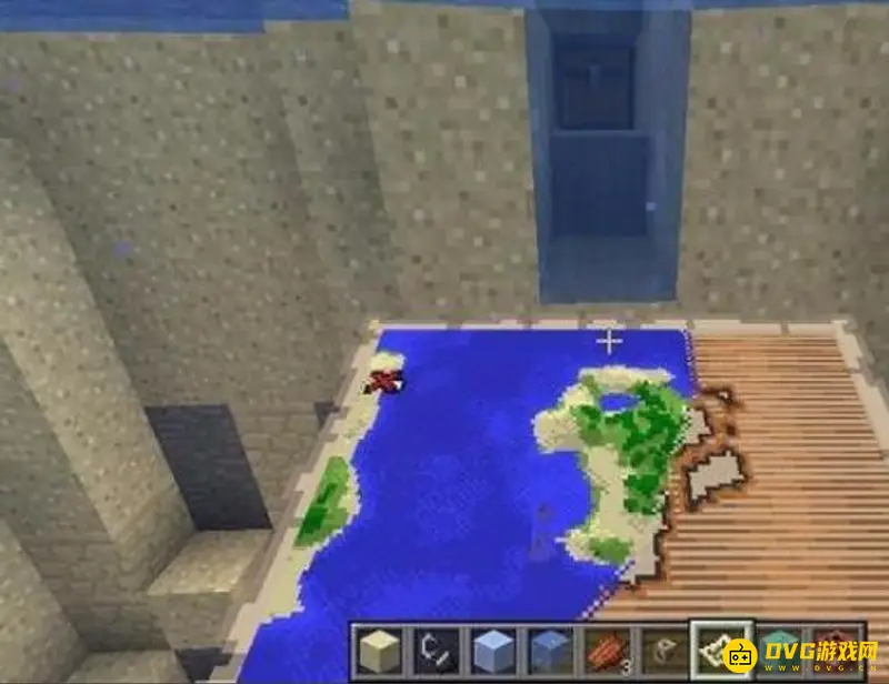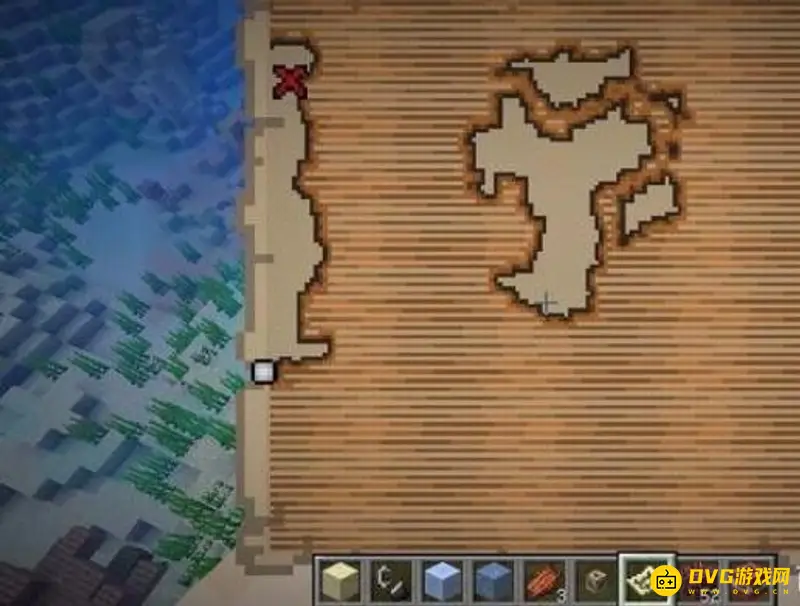 2. 对着宝藏地图的位置向下挖,有些宝藏在海平面,有些则是在海底,他们通常被沙子、砂砾等方块掩埋起来。