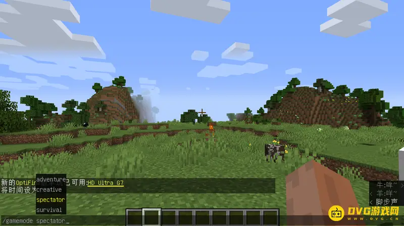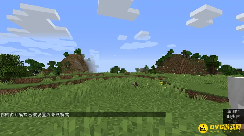 2、可以看到游戏左下角提示游戏模式已经设置为旁观模式。