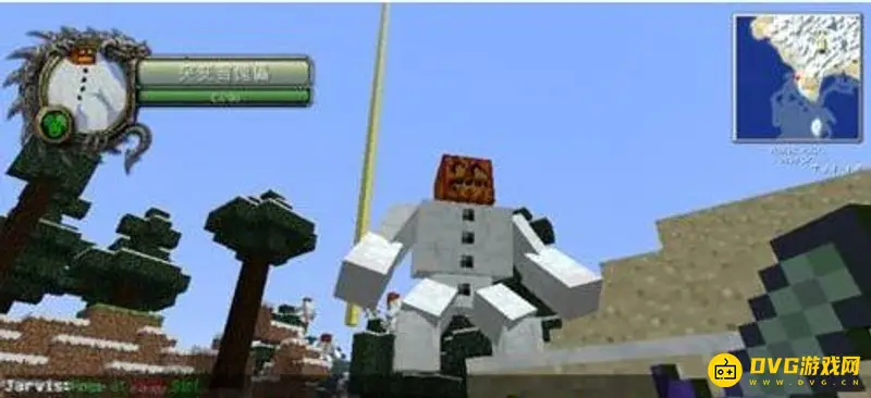 3、从中间开始向上堆积,然后挖掉中间的两块,放上雪傀儡,最上面放上岩浆就行了。