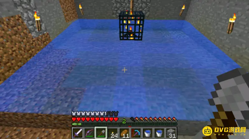 2、再往下挖一层,这样让刷怪笼作为9x9x3的中心