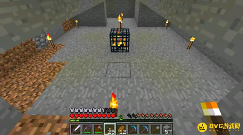 11、然后再往下挖2格,这样蜘蛛看到玩家就会往下走
