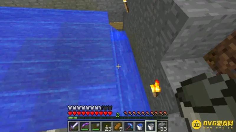 7、放上水之后的效果,把蜘蛛冲向牌子处牌子就是刷怪笼的集中处,全部怪都会从那里下来
