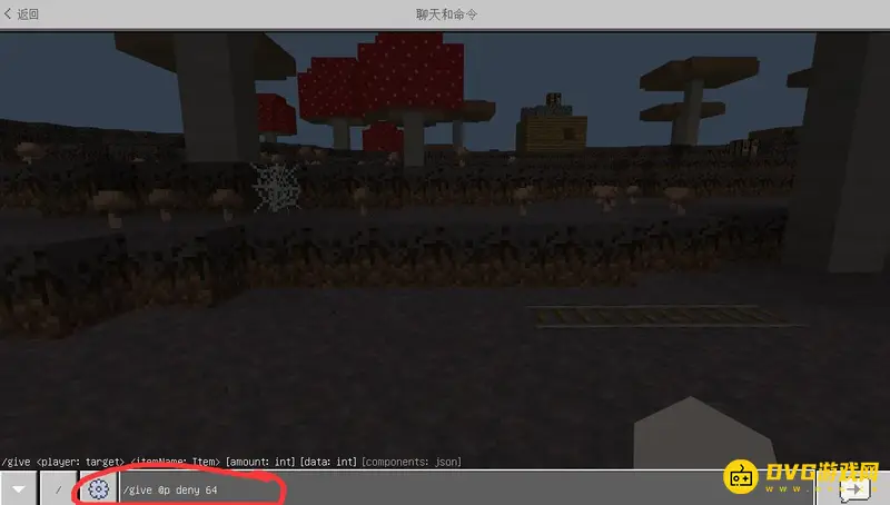 1,首先我们打开聊天框,输入指令/give @p deny 64。