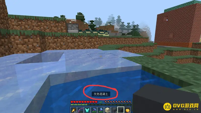 3,接着我们把灰色混凝土粉末放在水的旁边,这样他就可以形成混凝土。