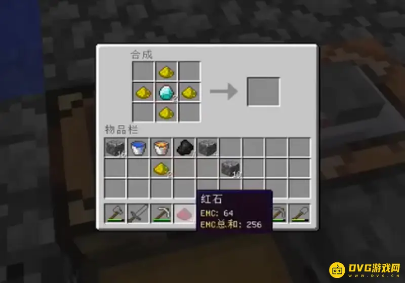 3.剩余的四个空格放置好红石后,可以看到在制作栏的右侧成功合成一个贤者之石。