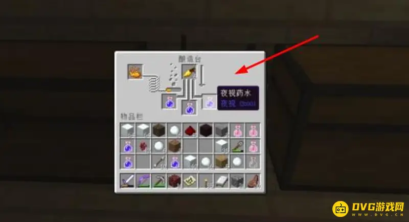 7、拿下酿造台里的地狱疣,放上金萝卜炼成“夜视药水”。