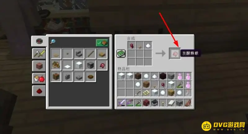 5、做发酵蛛眼,一个蜘蛛眼加一个蘑菇加一白糖合成发酵蛛眼。