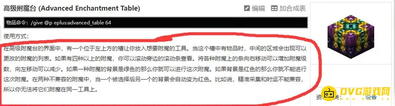 2,然后找到高级附魔台的说明,就可以发现使用方法了。