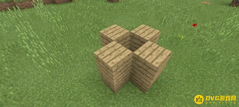 3.然后跳进围起来的坑里去,再把顶好。这样你就获得了一个完全黑暗的环境,直接在脚下种个蘑菇即可。