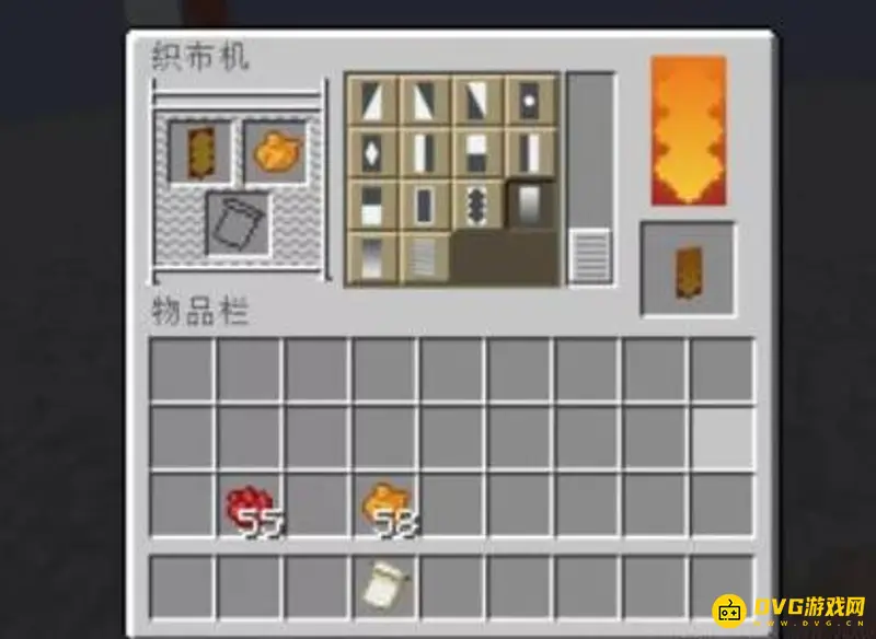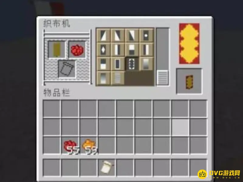 首先使用织布机,用上红色染料给黄色旗帜染上红波纹边的图案。