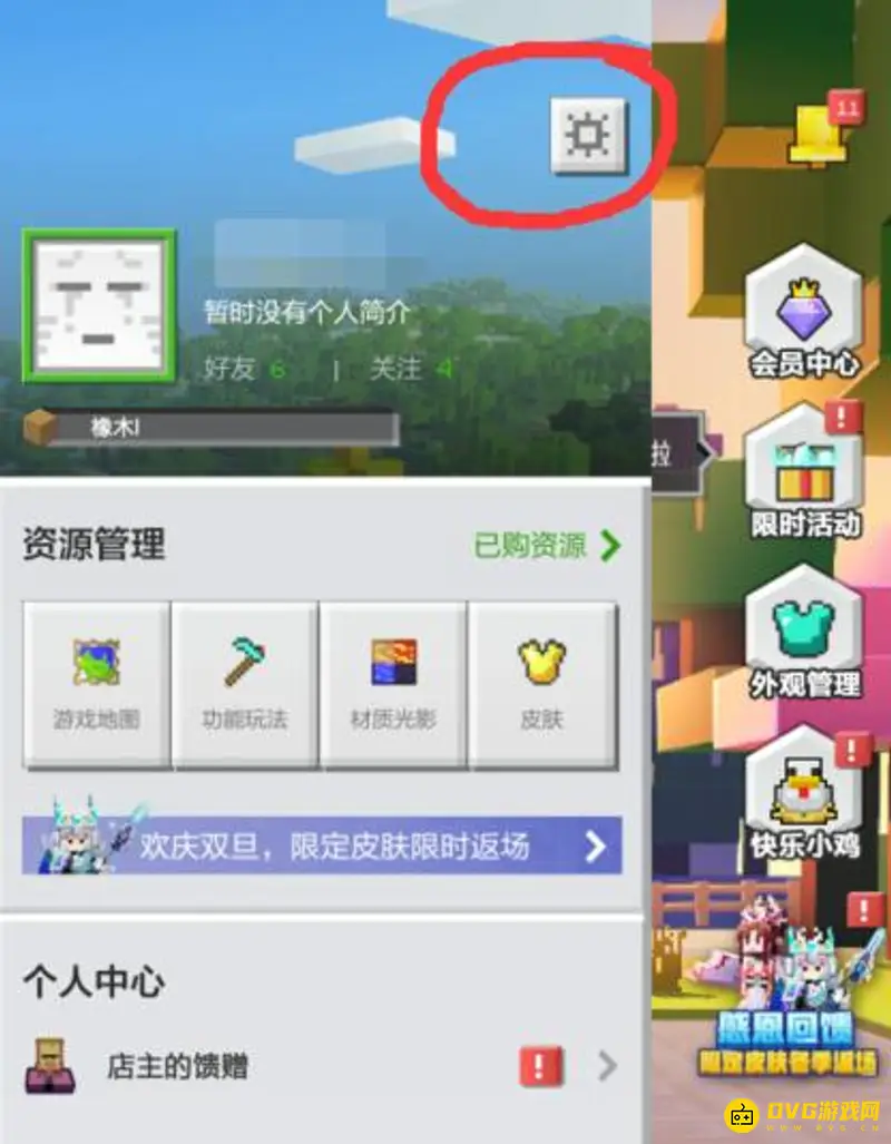 1,首先进入我的世界,点击头像,再点击头像右上角的设置。