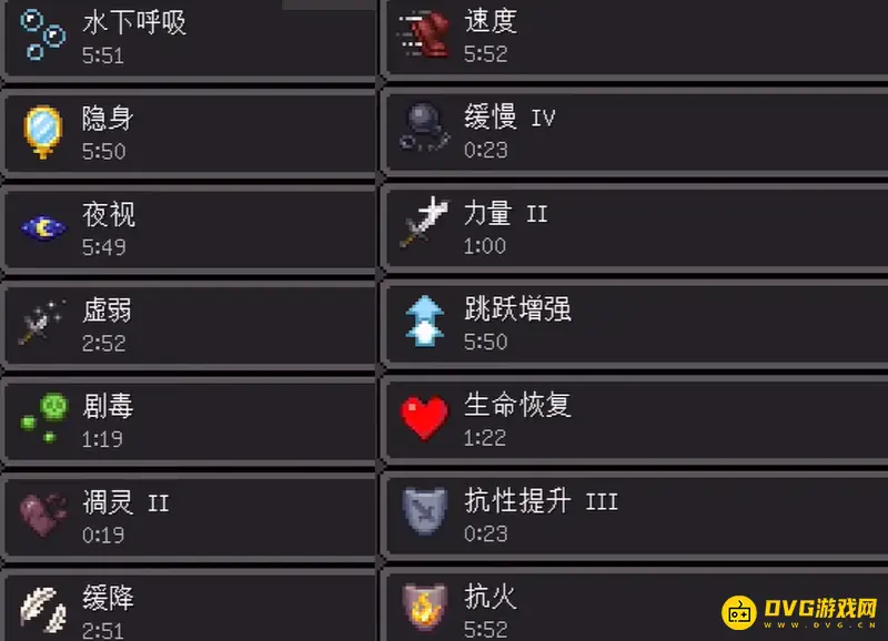 一共有13种效果。在游戏中达成狂乱的鸡尾酒的成就,玩家可以获得13种效果,分别是:水下呼吸、隐身、夜视、虚弱、剧毒、跳跃增强、凋灵II、缓降、缓慢IV、力量II、跳跃增强、生命恢复、抗性提升III、抗火。