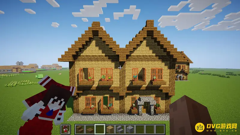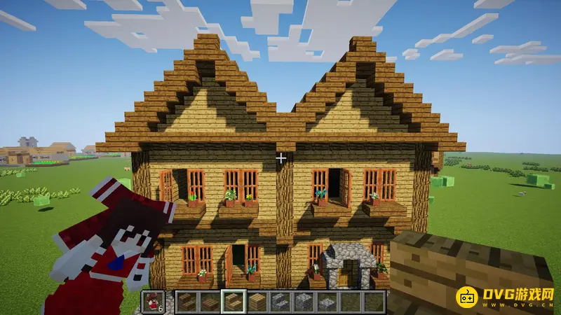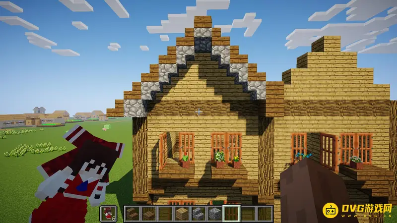 9.现在到比较难的屋顶了,材料用云杉木板跟楼梯,具体怎么搭看图吧