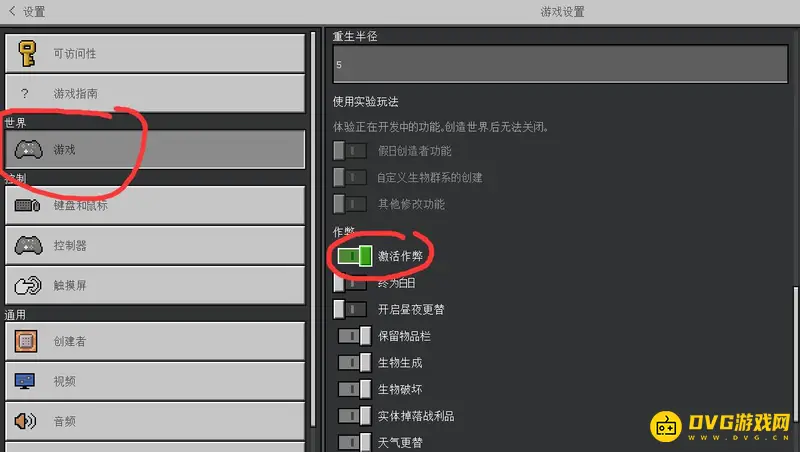 2,接着点击左侧的游戏,把右侧的激活作弊给打开就可以开启作弊模式了。