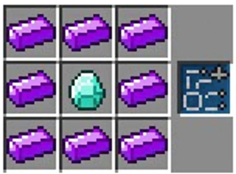 1、收集材料:9个紫晶锭和1个钻石,远古纯宝石(获取方法:自动机怪 、菊花、血之吮吸者、岩石蜘蛛);将紫晶和钻石摆放如下图所示,合成蓝图。