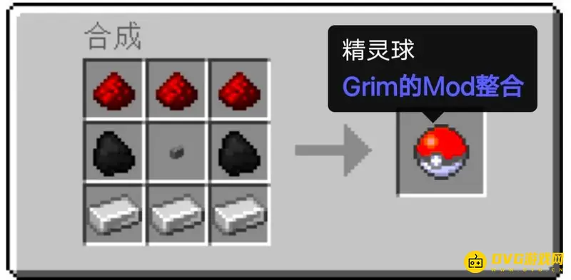 红石粉 * 3 煤炭 * 2 石质按钮 * 1 铁锭 * 3=精灵球 * 1。可以捕捉所有原版实体生物包括模组生物,船和矿车也可以捕捉。除玩家,经验球,末影龙不可被捕捉。