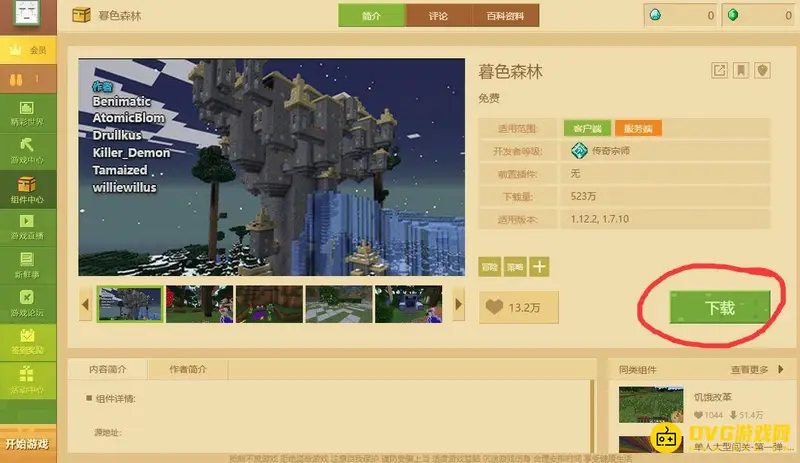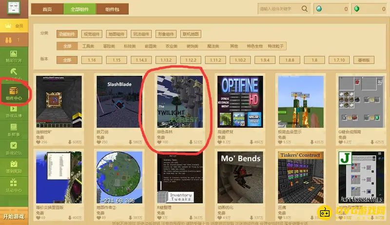 1、点击进入我的世界,点击左侧的组件中心,右侧会显示许多组件,自己随意选择