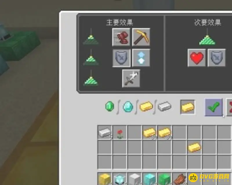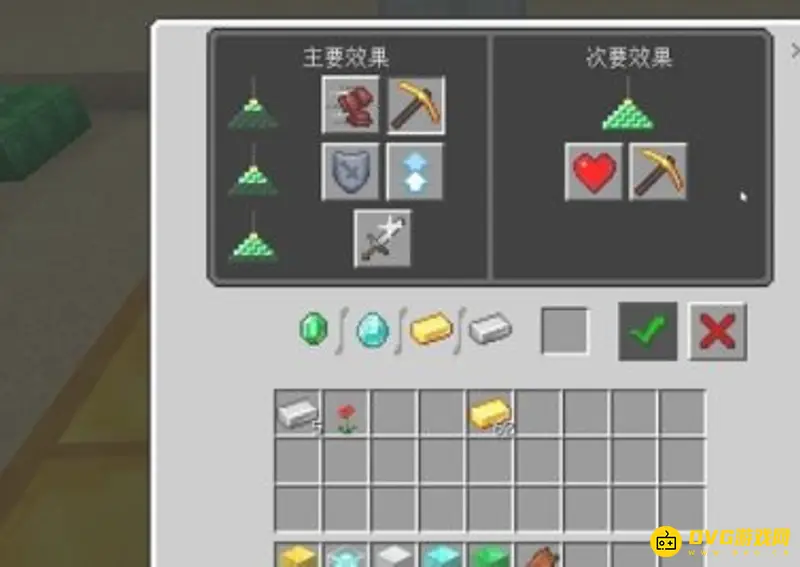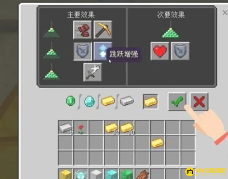 4.选择一个buff效果用铁锭、金锭、钻石、绿宝石中的任何一个作为材料。