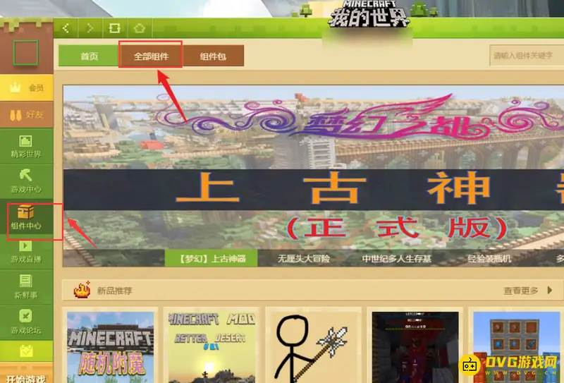 1. 打开我的世界,点击启动器左侧的组件中心,进入模组界面,设置筛选条件,查看所有模组。
