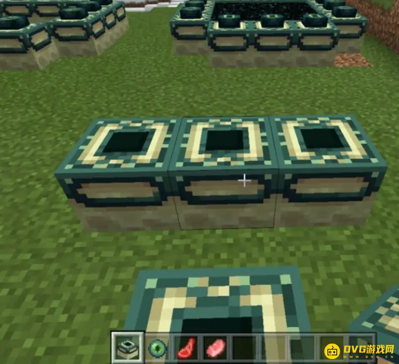 7.站在垫高的方块上,在方块前一格的位置放置末地传送门方块。