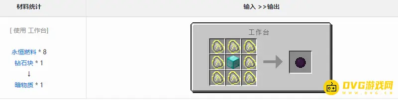 2.合成暗物质要8个永恒燃料和1块钻石块合成,然后将永恒燃料放到四周,再把钻石块放到中间,我们就可以合成出暗物质了。