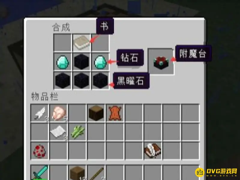 7.最后!我们使用这些工具合成附魔台:如第一步中的图片所示!摆放好后就能合成附魔台啦!