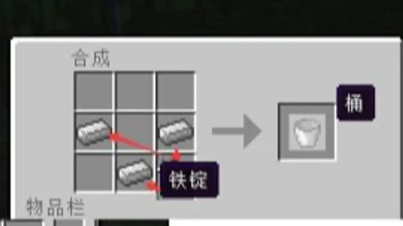 5.装岩浆或者水的桶必须事先准备一个!桶使用工作台由三块铁锭合成!成V字形合成!