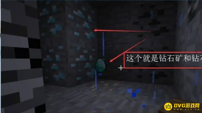 3.这种石头就是钻石了~记得一定要使用铁镐挖哦!金镐挖当然也是可以的哈!最少要使用铁镐!