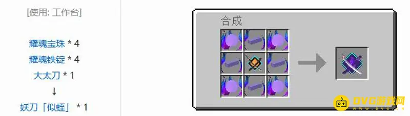 4,最后用四个耀魂宝珠,四个耀魂铁锭和大太刀就可以合成妖刀「似蛭」了。