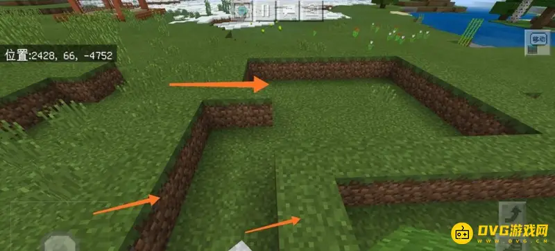 2、准备好这些材料之后,我们开始来到野外。寻找一个空地的地方,我们首先使用草方块搭建出一格高的方块。将其分为两个部分,如下图所示。