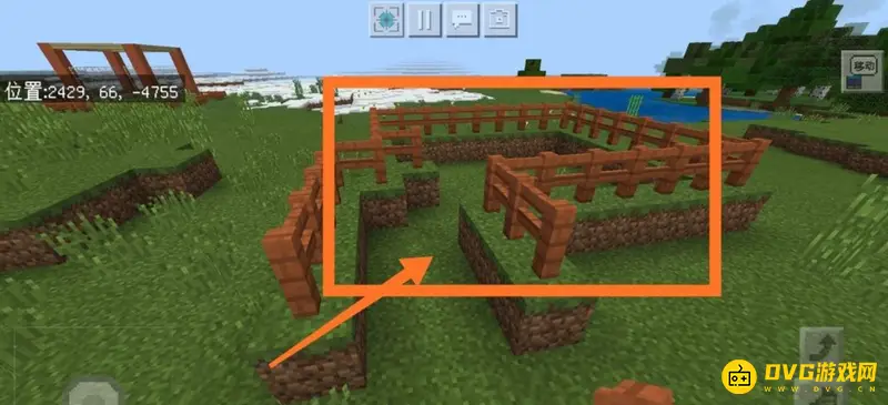 3、将其分为两个区域之后,我们拿出栅栏,将我们搭建好的位置给围出一格高的栅栏,这样小鸡就不会跳出来了,如下图所示。