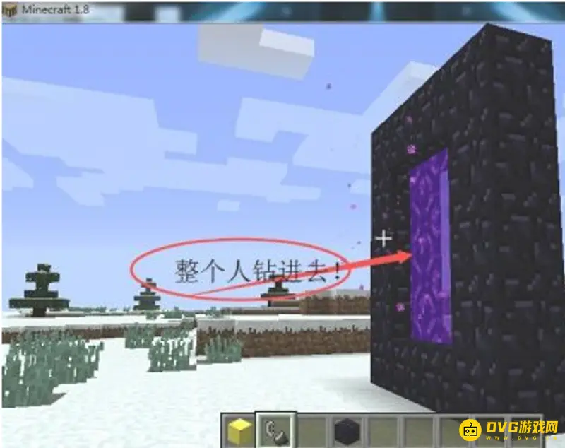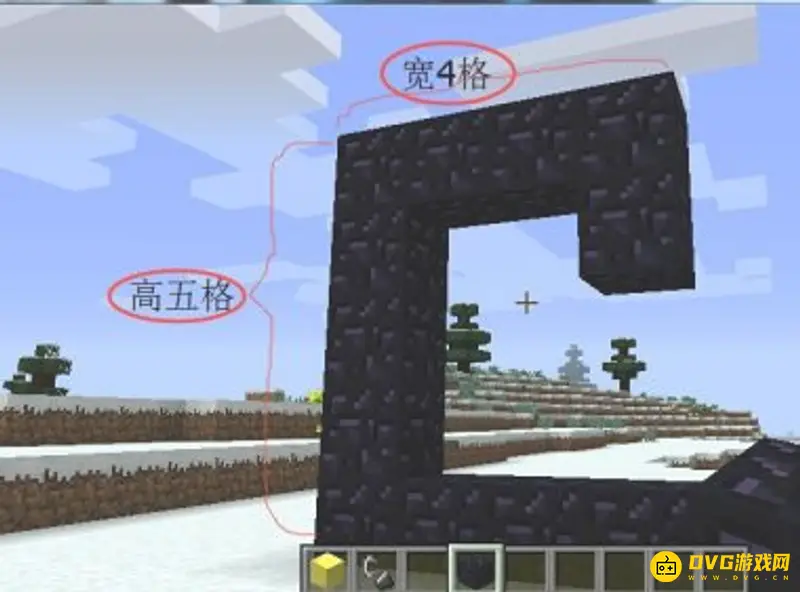 2.使用黑曜石在地上竖立一个宽4格高5格的门兴方框